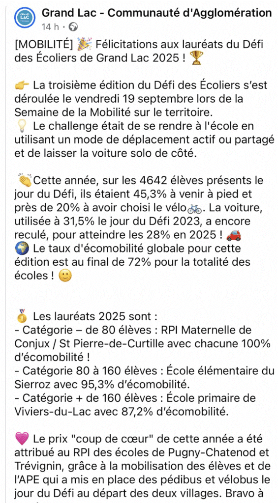 Défi des écoliers 2025, Pugny-Châtenod récompensé